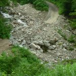 昨日は明け方より山へ。伊折~馬場島間は数日前より路肩決壊の為通行止めとなっている。(その前は大雨の為)そろそろ治ってないかなと偵察に。